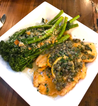 From there the entrees began to arrive. Dana offered. “I had the Chicken Picatta with broccolini. The portion size was good, two large chicken breasts with a ton of capers, and the sauce was excellent. Overall, a very tasty dish I’d have again.”