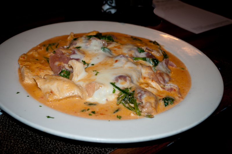 I decided to go with Oscar’s Special, which included chicken, shrimp, spinach, prosciutto, mozzarella and a side pasta. The first thing you could taste from the dish was the sauce, it was very rich and creamy. All of the meat and seafood was cooked just right. However, I did have trouble with the shrimps due to the fact that they were cooked with the tails on. I received a very unexpected case of crunchiness when I bit into one. Overall, the dish was very enjoyable. One note that I should mention is that there could have been a little less salt in the dish. Because you were already cooking with ingredients that tend to be salty to begin with (i.e. prosciutto, shrimp and mozzarella) there wasn’t a need to overly salt the dish as you could have relied on the saltiness of those ingredients to do the seasoning for you and the dish would have been dynamite. The side pasta however was not what I was expecting though. The pasta was cooked perfectly al dente, but the marinara was not as sweet as it should have been, and almost seemed from a can or a jar. I think that a nice addition to the dish was to have included the pasta in the dish itself. It would have given it much more texture, that creamy sauce could have balanced out and had something to adhere to and may not have made the dish so salty. When the night was over, however, I went home full and satisfied from the healthy portions. -HW